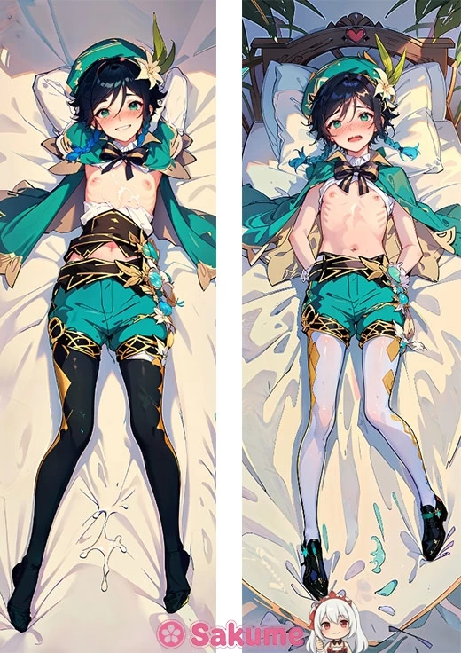 Sakume's Exquisite Venti Dakimakura Split-leg Hug Pillow | Genshin Impact with Stunning Detail & Ultra-soft Comfort Immerse yourself in the whimsical charm of Genshin Impact’s beloved Anemo bard, Venti, whose playful spirit and poetic heart breathe life into every moment. This dakimakura captures the essence of Venti’s free-spirited nature, inviting fans to share an intimate connection with the character beyond the game. Featuring Venti’s signature jet-black hair, enchanting green eyes, and delicate outfit accents that reflect his ethereal charm, Sakume’s Venti Dakimakura is meticulously crafted with high-definition printing to ensure every vivid detail is flawlessly rendered. The invisible zipper enhances both aesthetic appeal and practicality, delivering seamless comfort and elegance to elevate your collection.